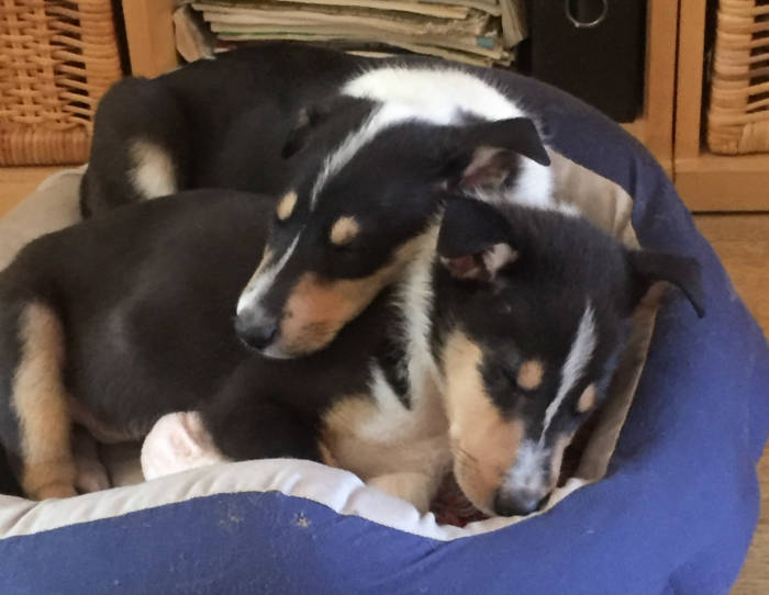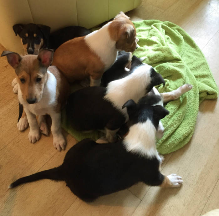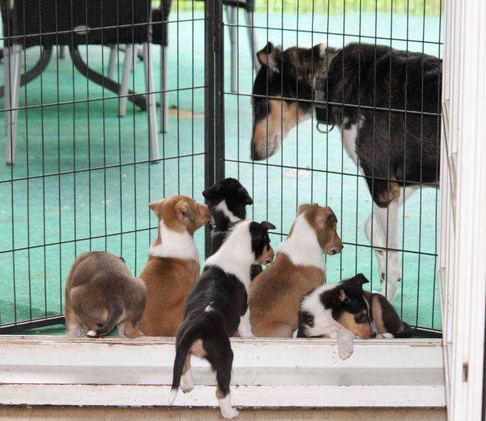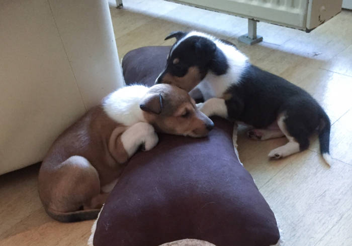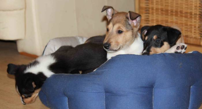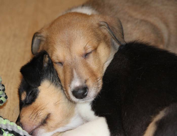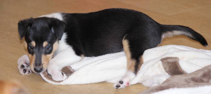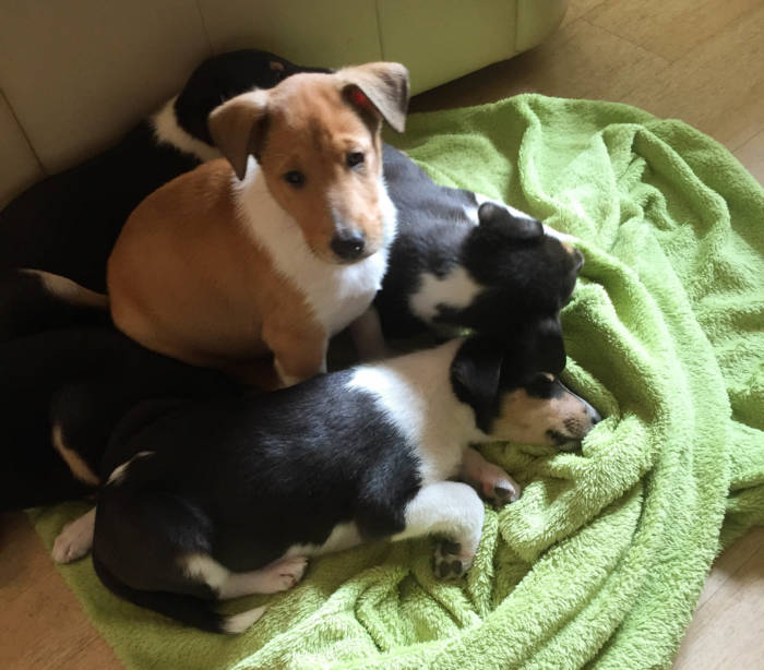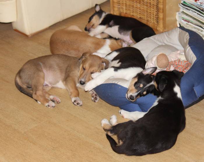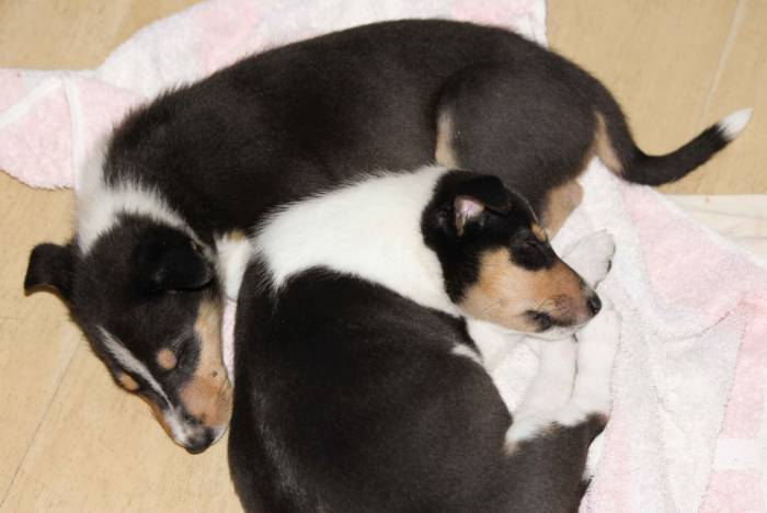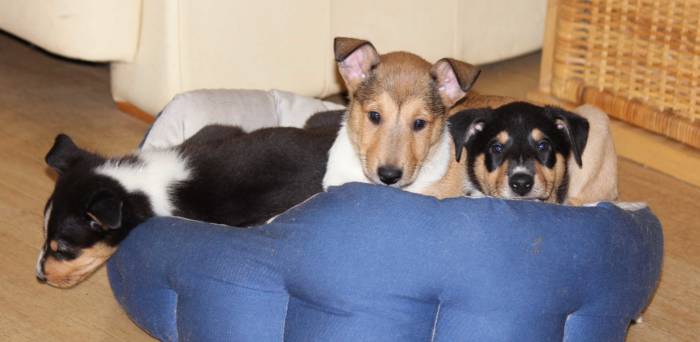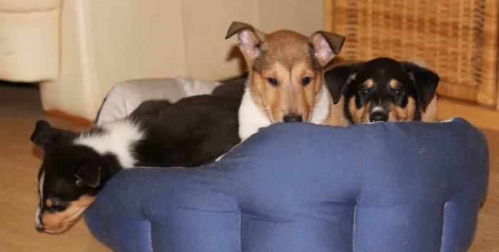 Bis auf 2 Rüden sind bei den Kurzhaarcollies alle vergeben. Bei einer zobelfarbenen Hündin sind wir noch am überlegen. Eigentlich haben wir z. Zt. genügend Hunde und wollten ursprünglich ja keine behalten. Aber wie es immer so ist – man verliebt sich und dann wird es schwer.