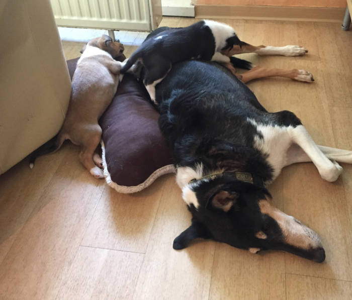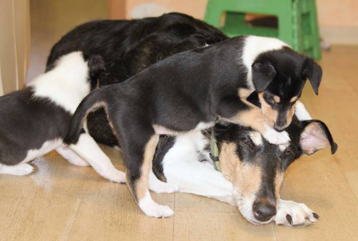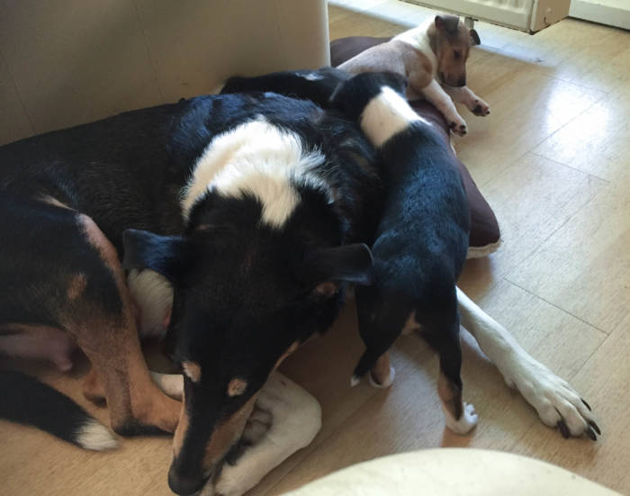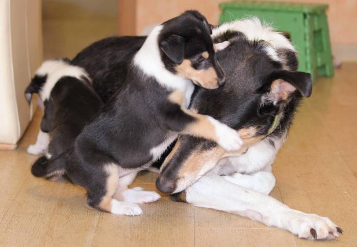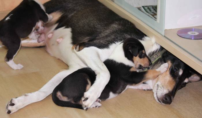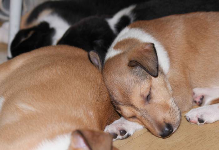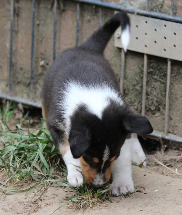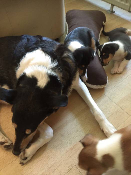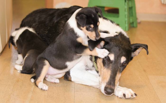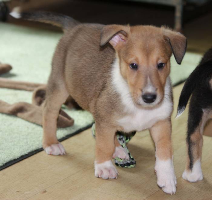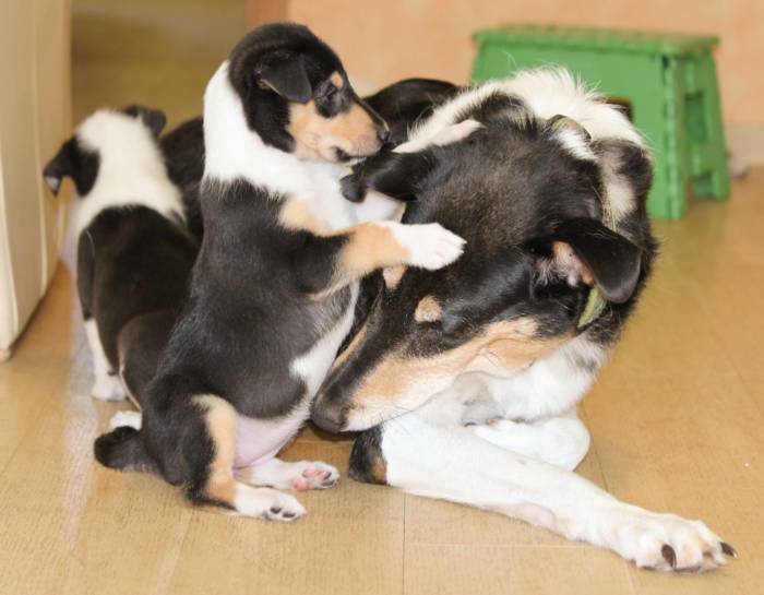 Bis auf 2 Rüden sind bei den Kurzhaarcollies alle vergeben. Bei einer zobelfarbenen Hündin sind wir noch am überlegen. Eigentlich haben wir z. Zt. genügend Hunde und wollten ursprünglich ja keine behalten. Aber wie es immer so ist – man verliebt sich und dann wird es schwer.