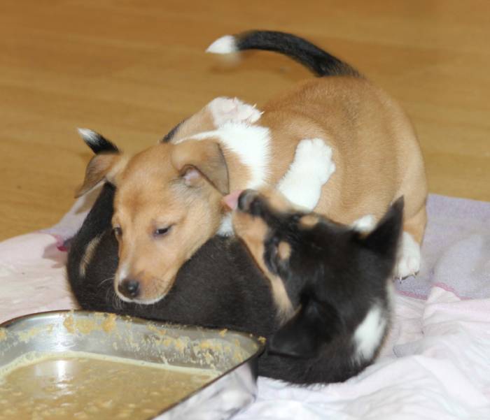 Die Kleinen wachsen unaufhörlich und werden immer geschickter und munterer. Sie möchten schon die meiste Zeit in den Garten und im gesamten Wohnzimmer herumlaufen. Ihre Mama sehen sie nur noch selten, denn die hat langsam keine Lust mehr auf Kinderkram und weiß sie bei uns in guten Händen.