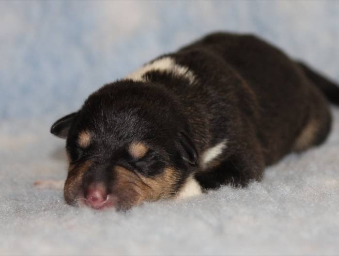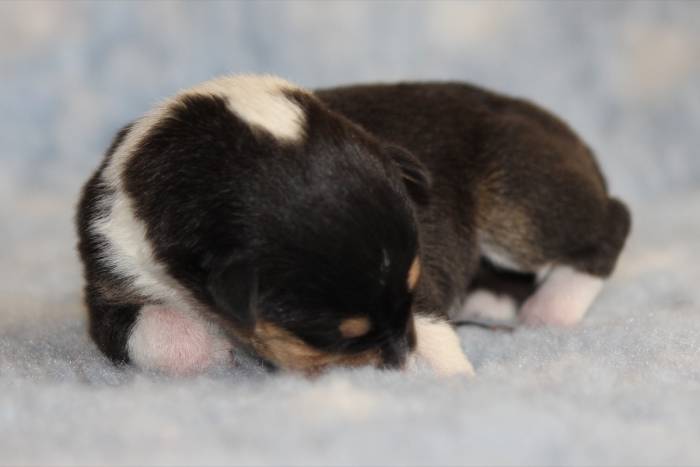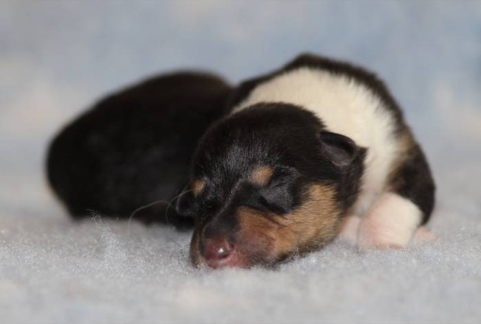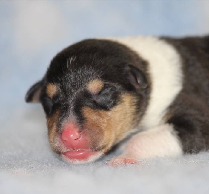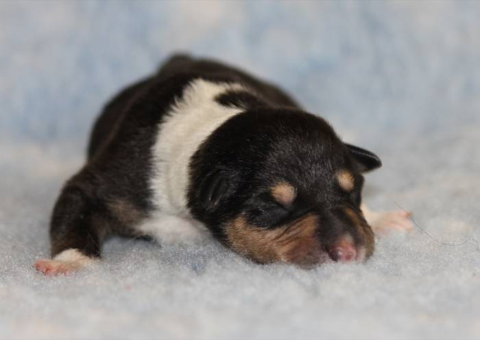 Rüde tricolour, geboren 06.10.2018 gegen 08:10 Uhr, 340g Geburtsgewicht