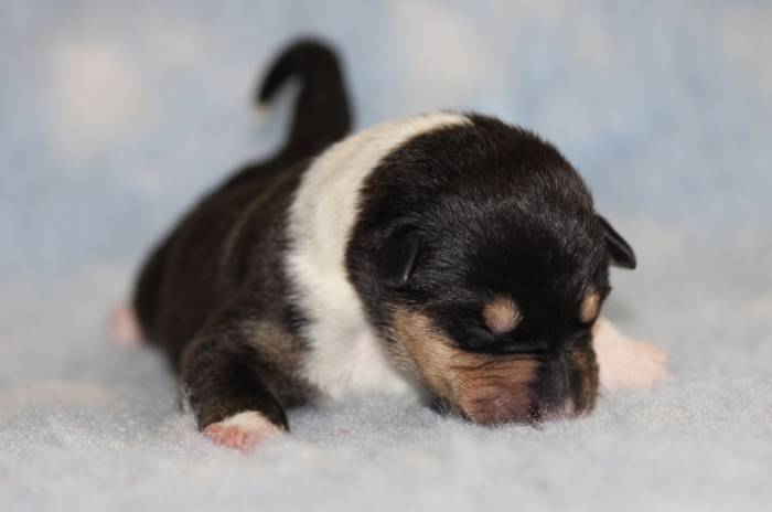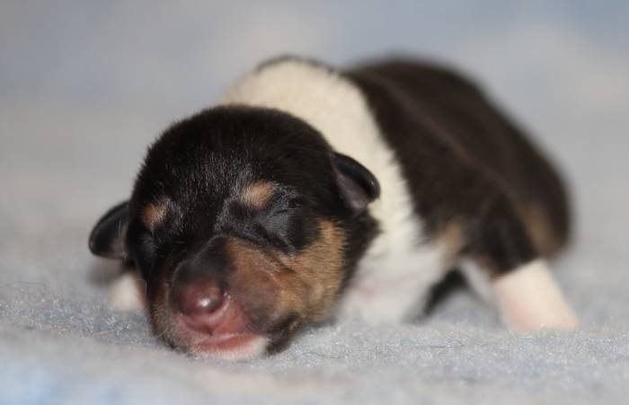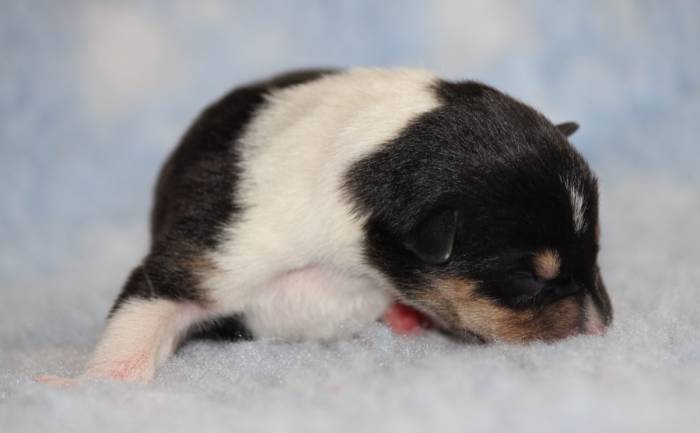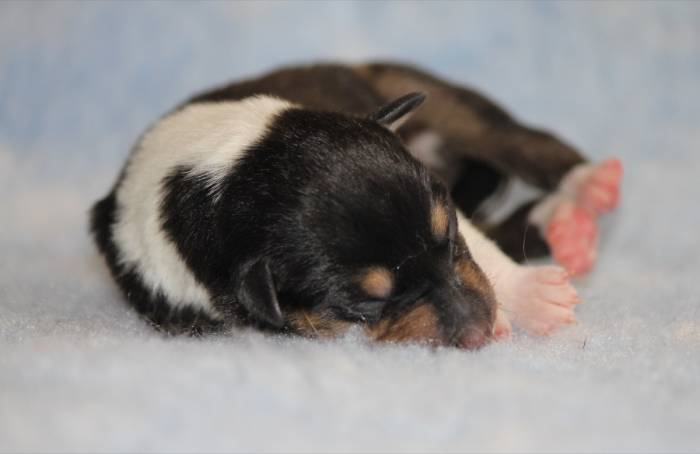 Rüde tricolour, geboren 06.10.2018 gegen 09:00 Uhr, 350g Geburtsgewicht