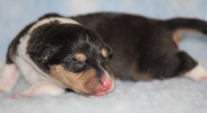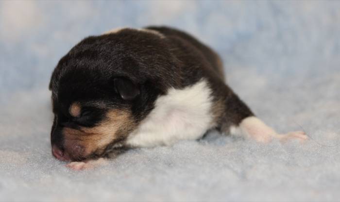 Rüde tricolour, geboren 06.10.2018 gegen 10:22 Uhr, 310g Geburtsgewicht