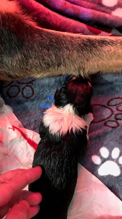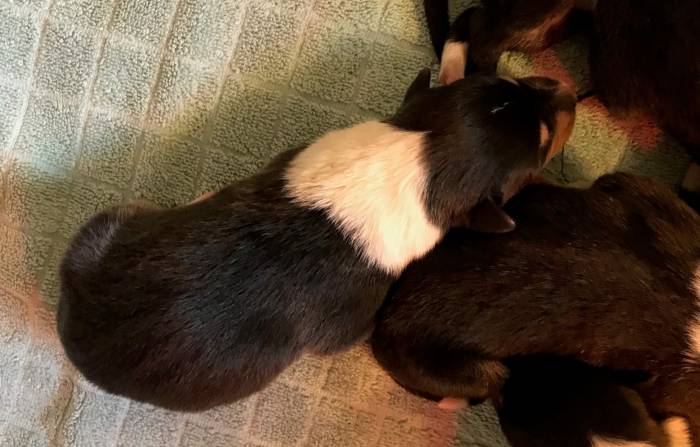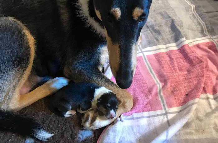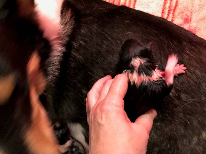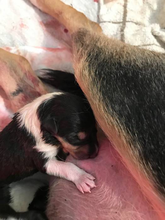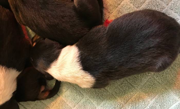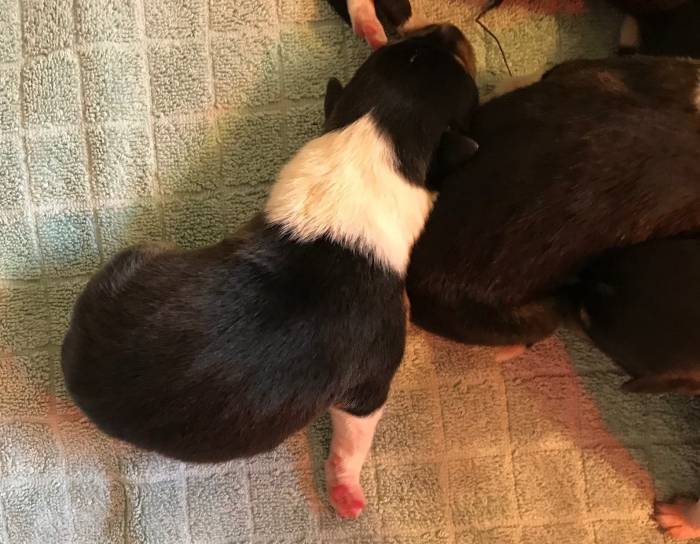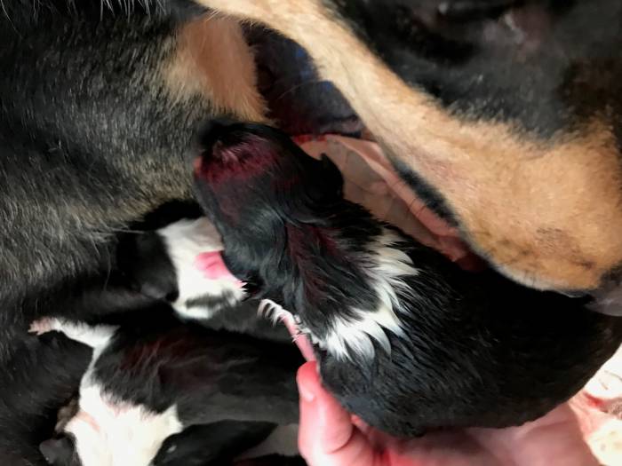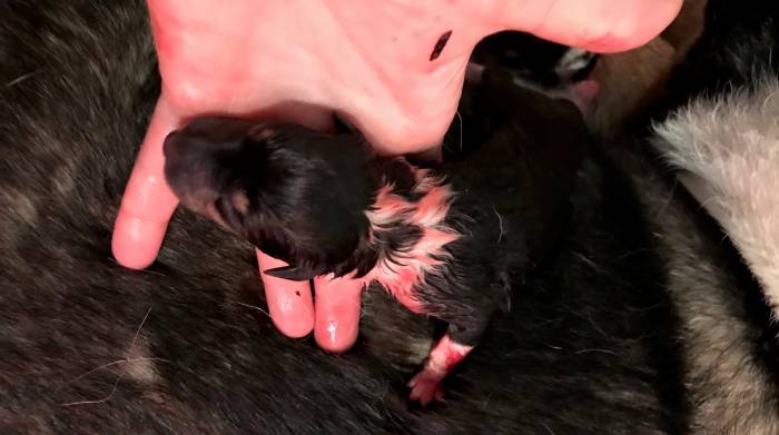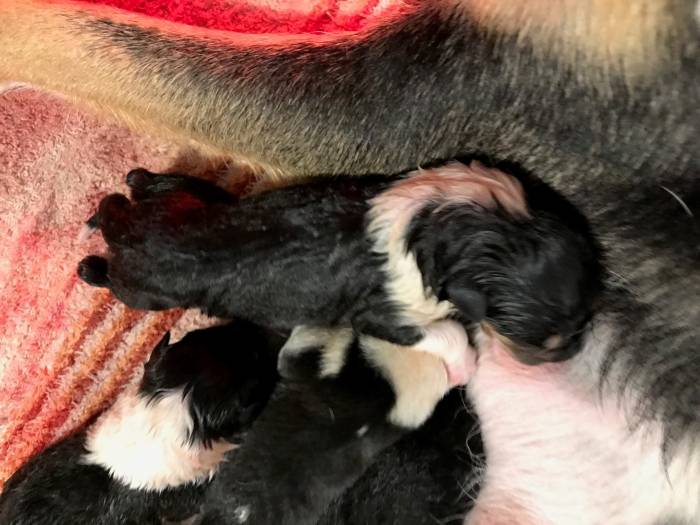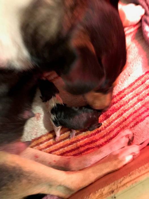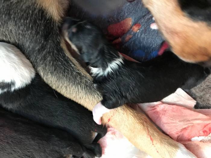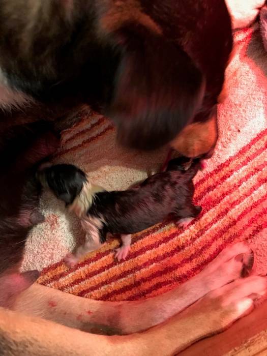Nach einer Tragezeit von 63 Tagen war es dann soweit. Bijoux bekam ihre 8 Kinder völlig problemlos und ohne viel Aufregung. Sie hatten alle gute, sehr einheitliche Gewichte und haben ohne viel Hilfe bald an Mama getrunken. Es ist so schön, wenn kein Baby tot geboren oder krank zur Welt kommt.