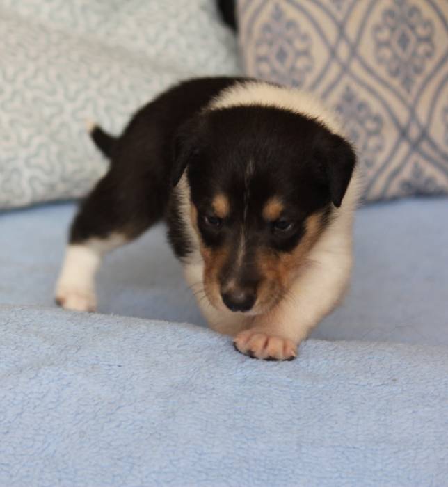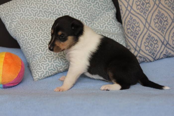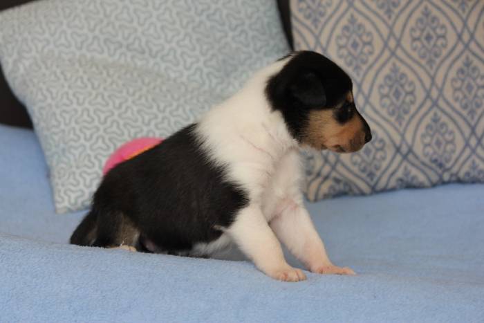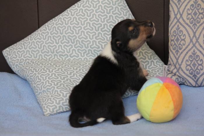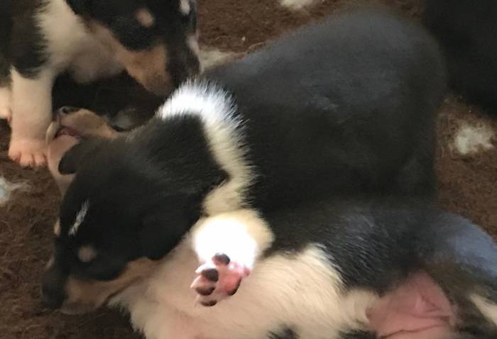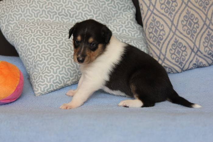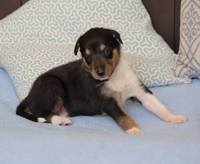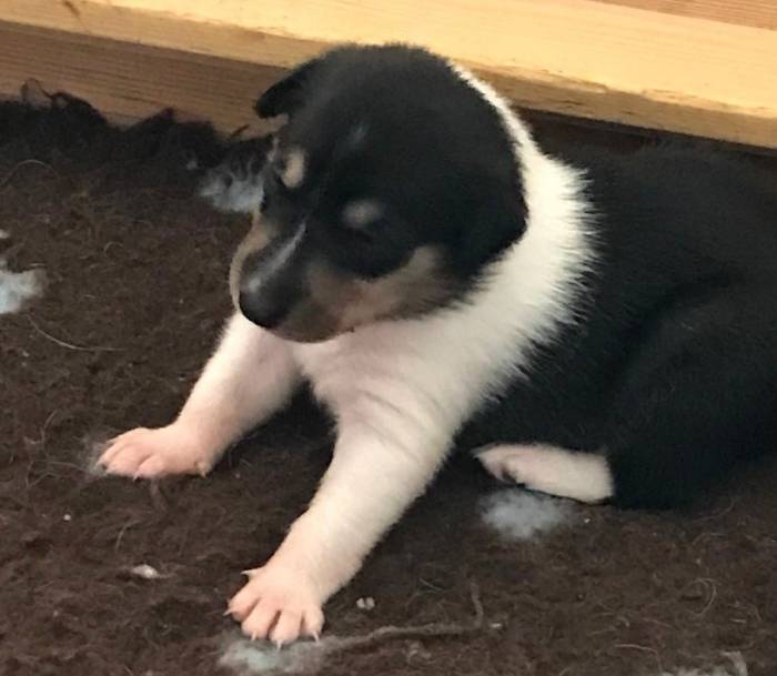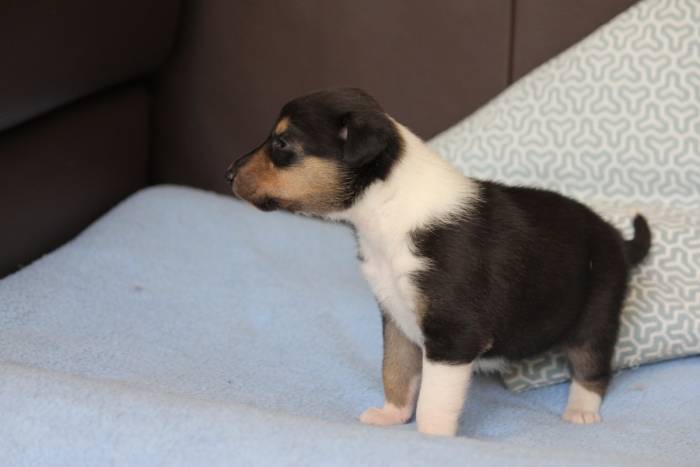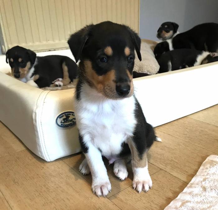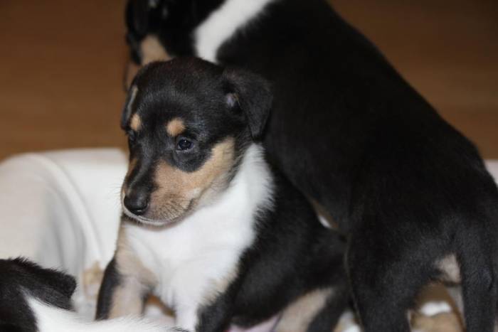 geb. 24.08.2019, 3 Rüden tricolour, 5 Hündinnen tricolour — Link zu Smooth Collie Database