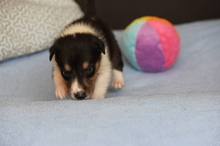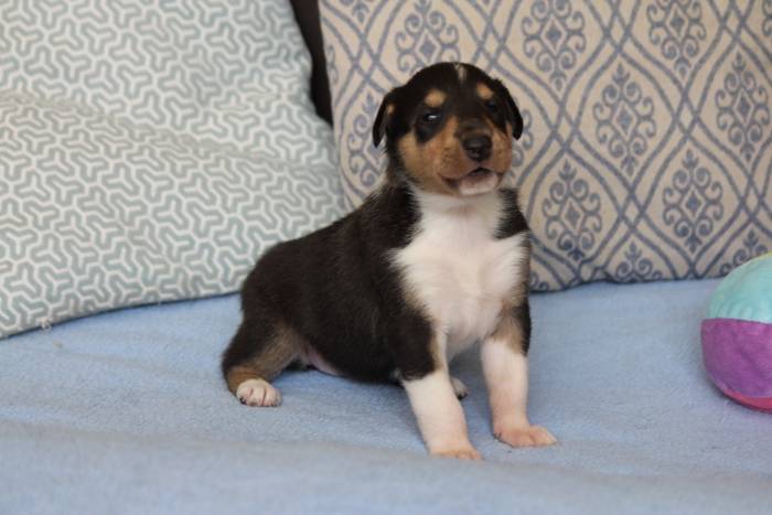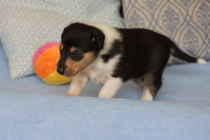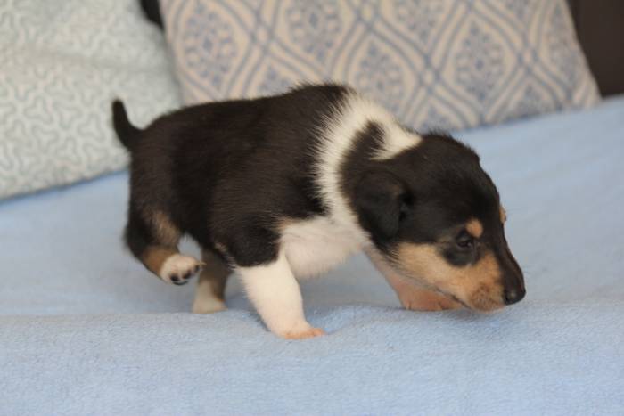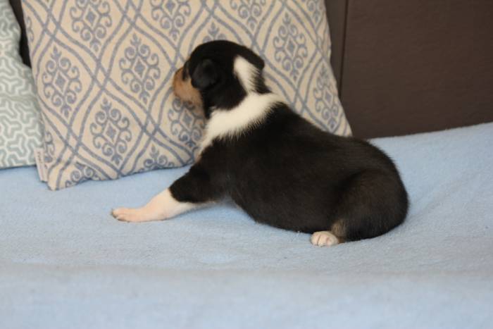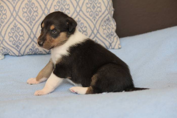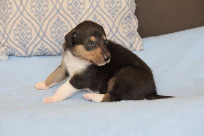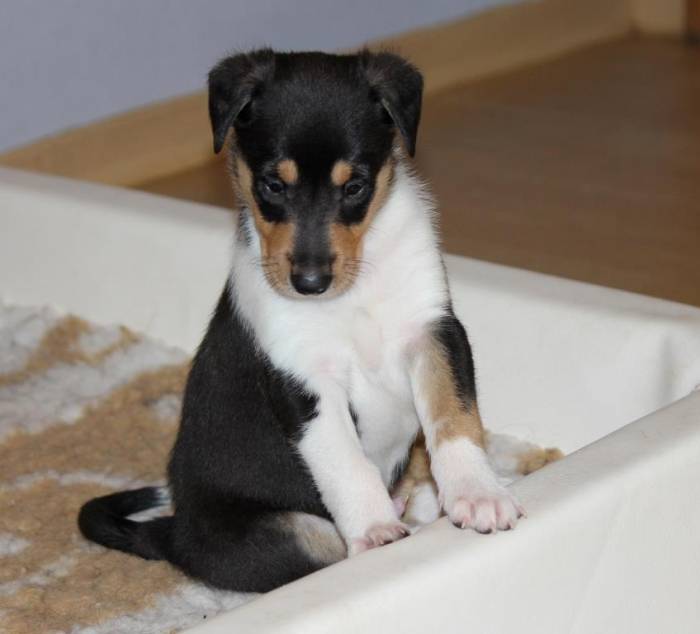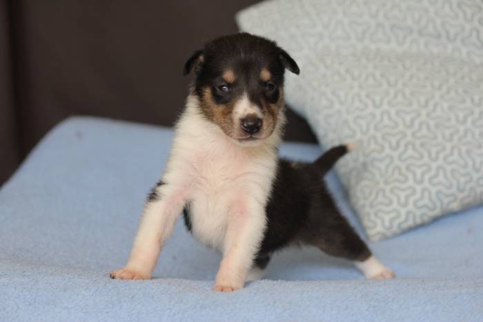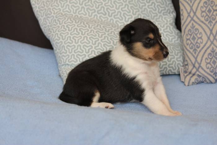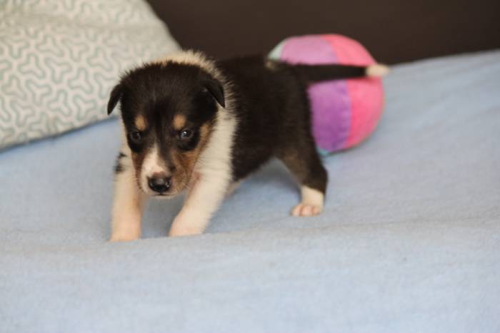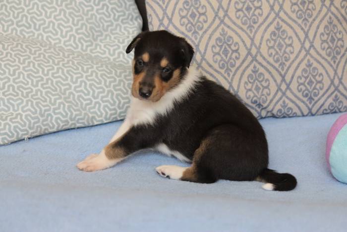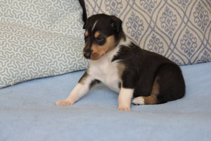geb. 24.08.2019, 3 Rüden tricolour, 5 Hündinnen tricolour — Link zu Smooth Collie Database