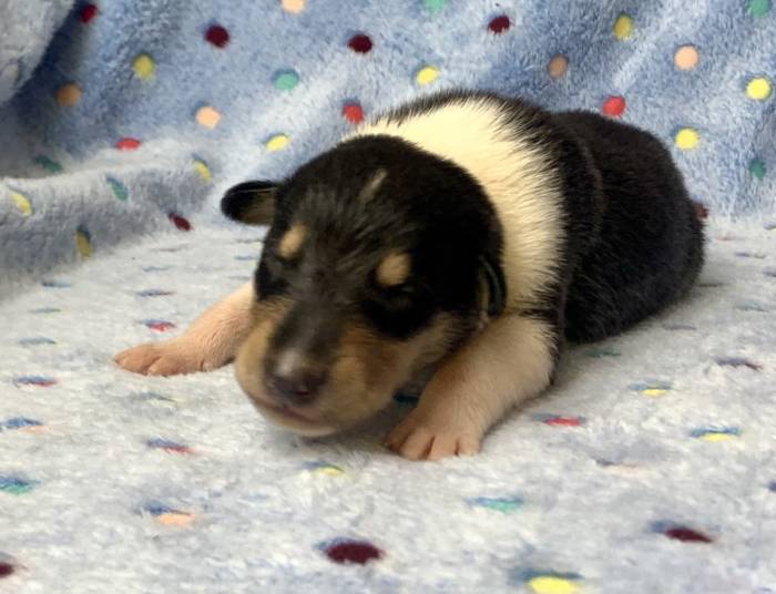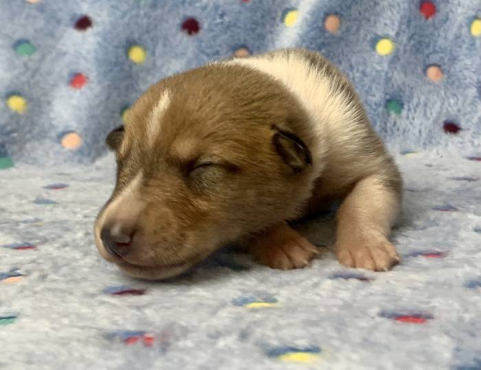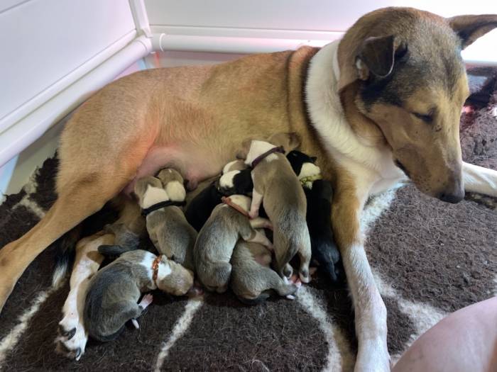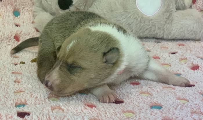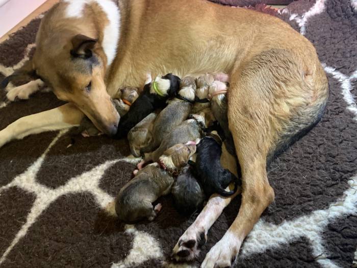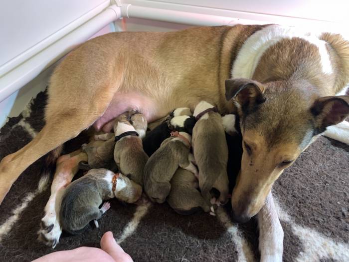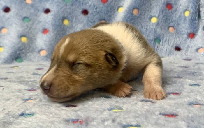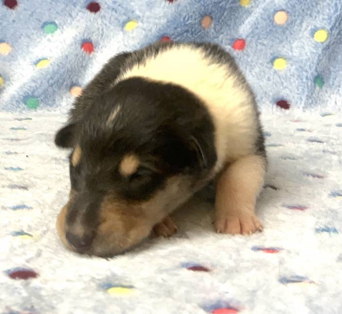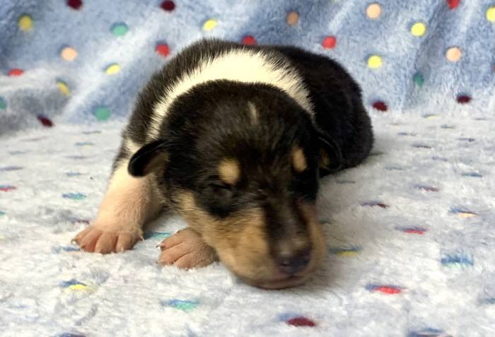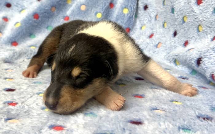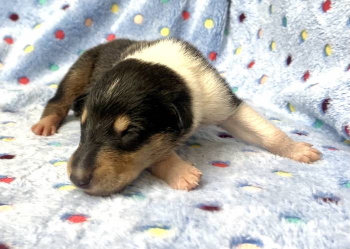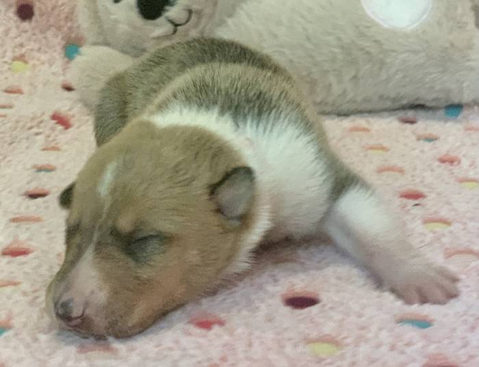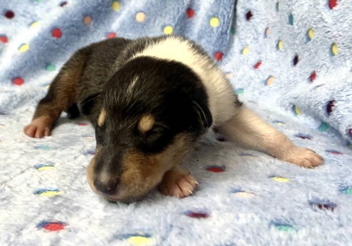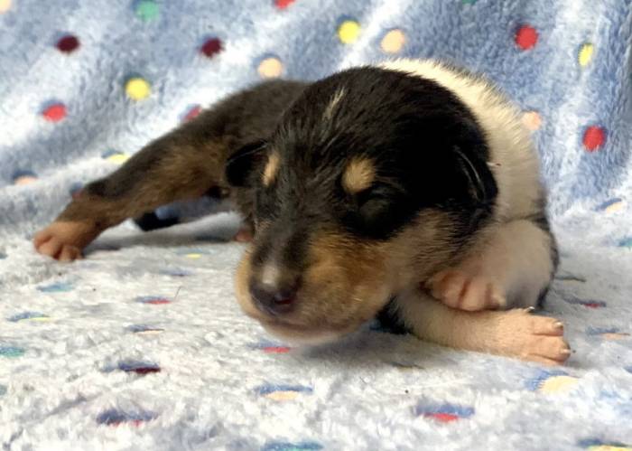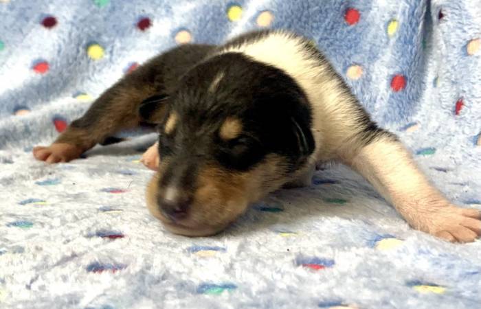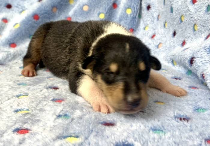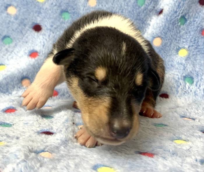 geb. 18.09.2023, 3 Rüden zobel-weiß, 2 Rüden tricolour, 5 Hündinnen zobel-weiß