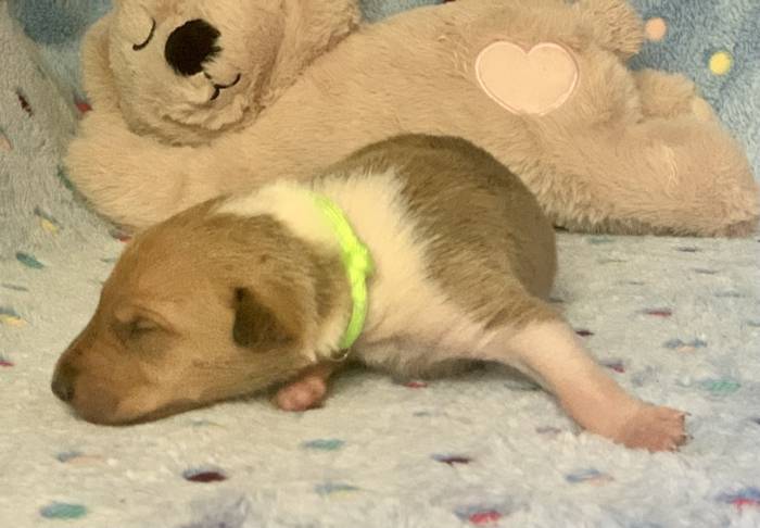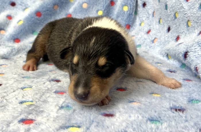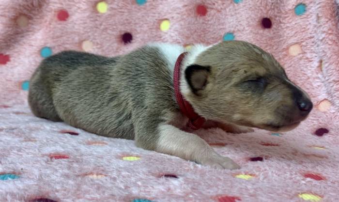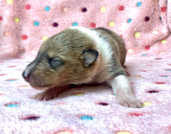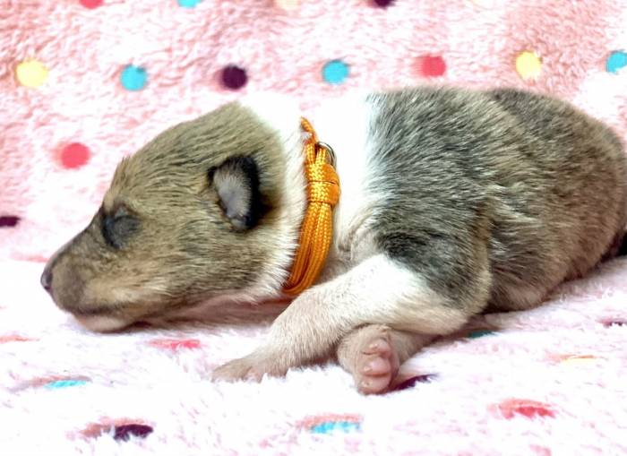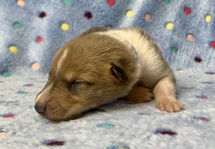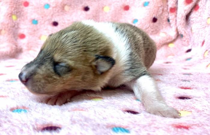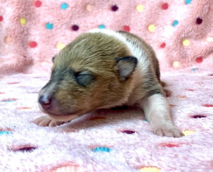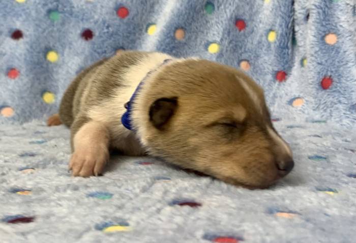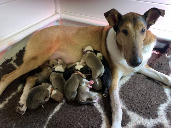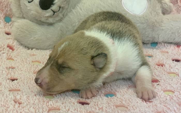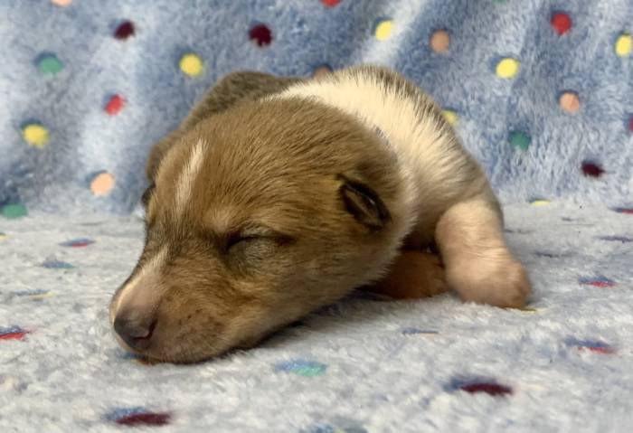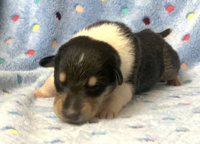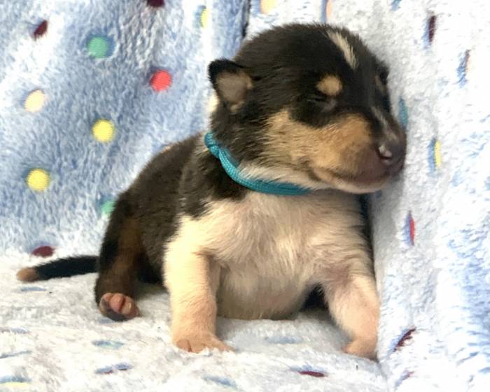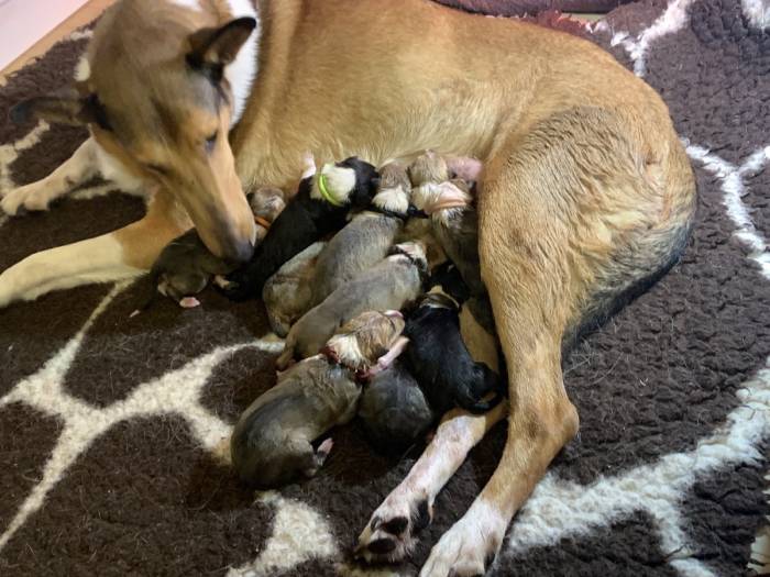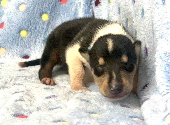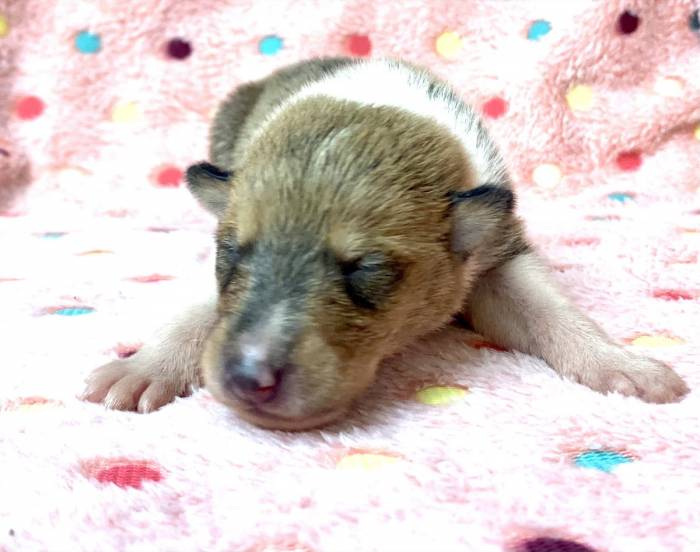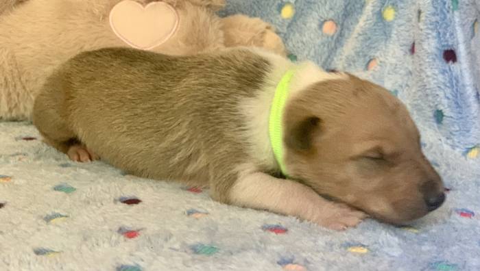 geb. 18.09.2023, 3 Rüden zobel-weiß, 2 Rüden tricolour, 5 Hündinnen zobel-weiß