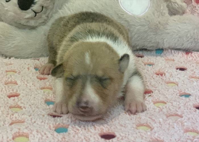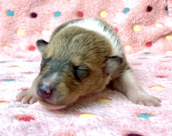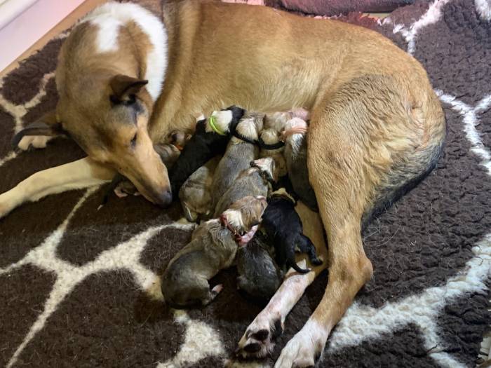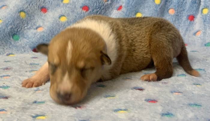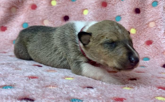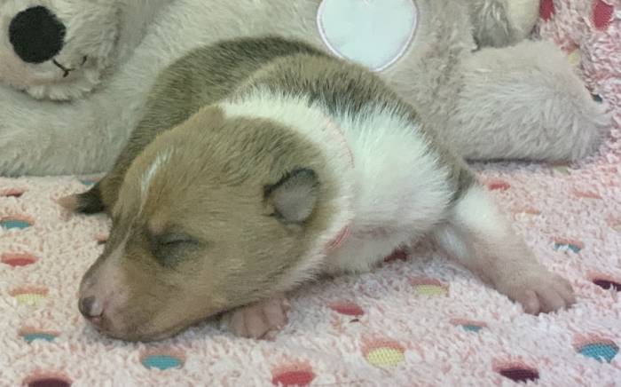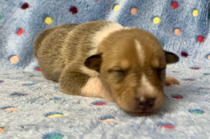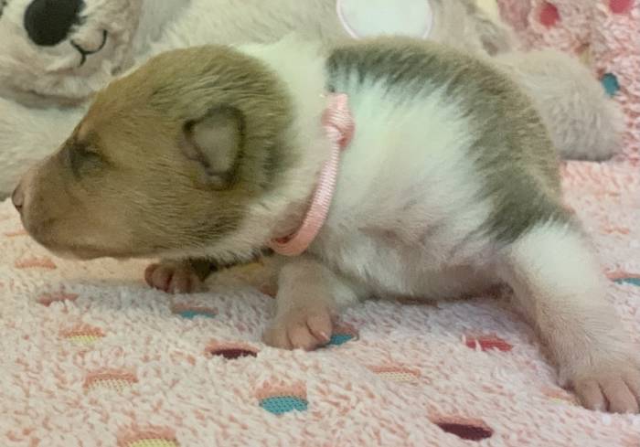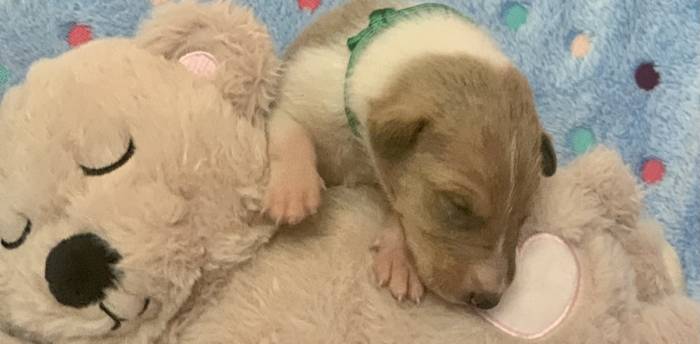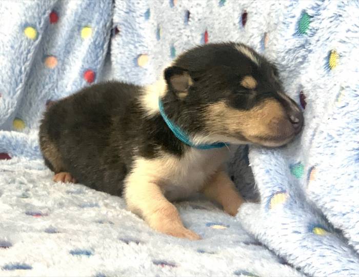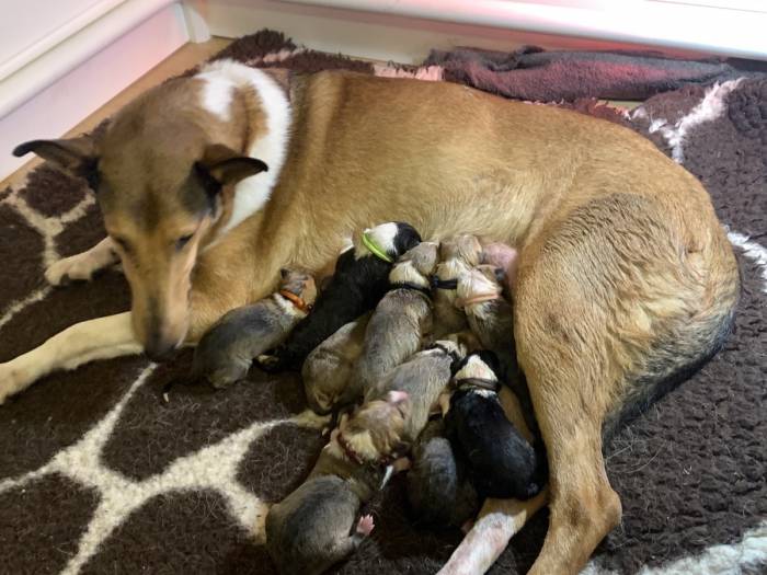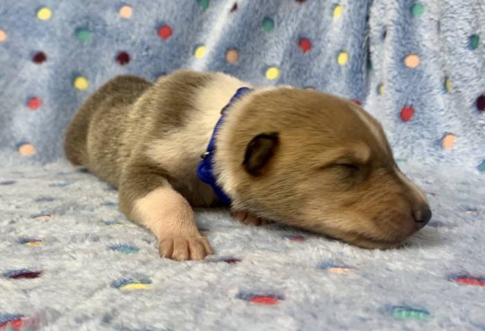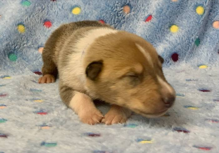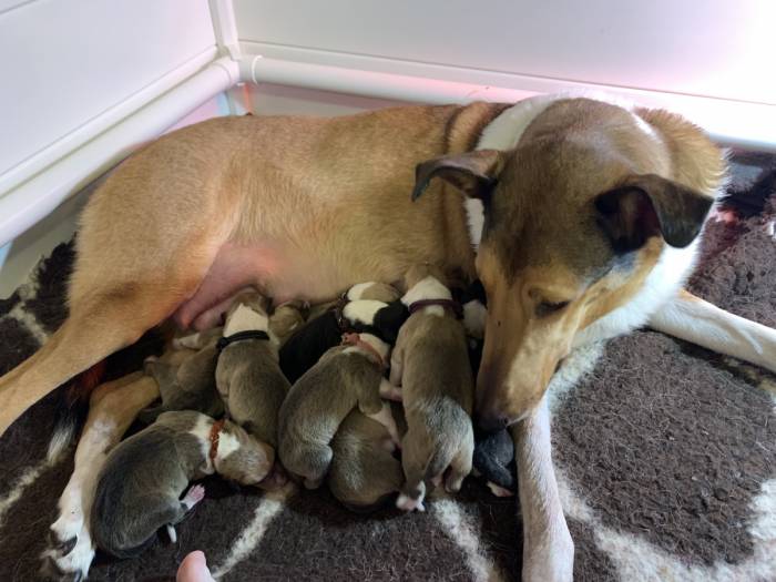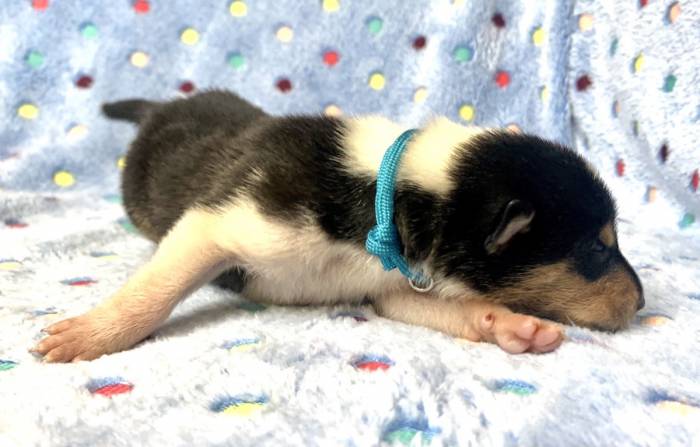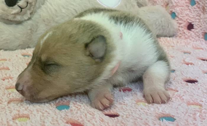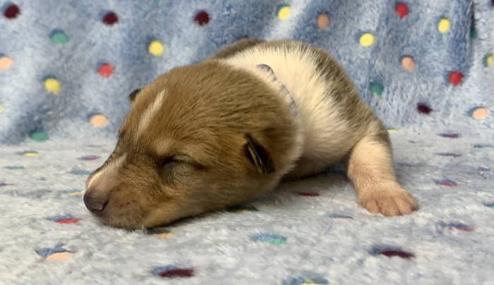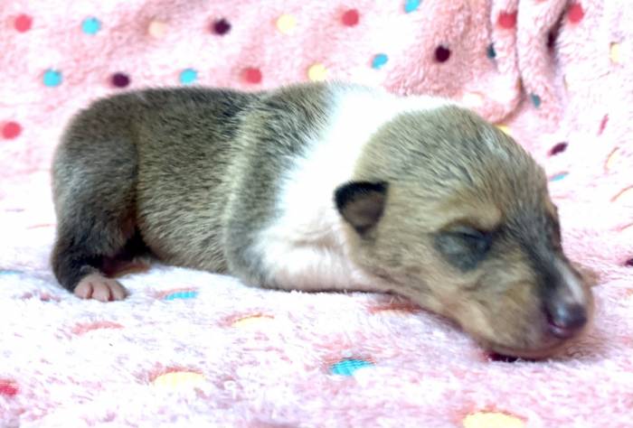 geb. 18.09.2023, 3 Rüden zobel-weiß, 2 Rüden tricolour, 5 Hündinnen zobel-weiß