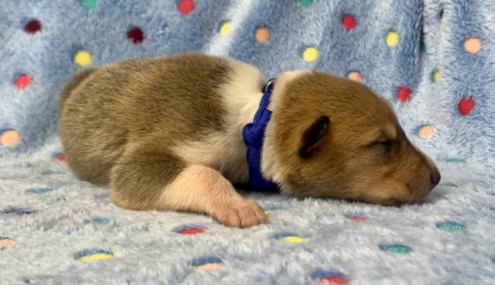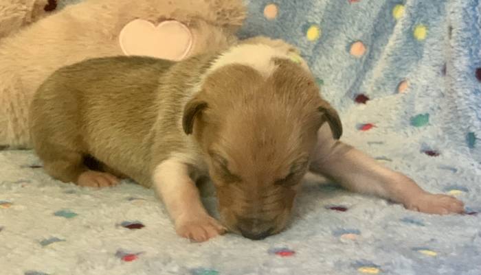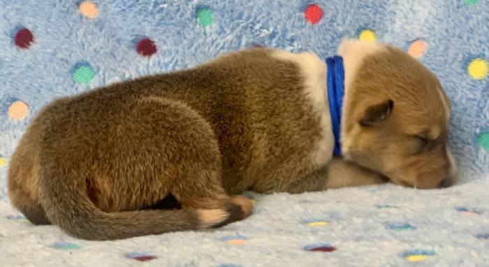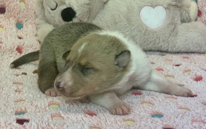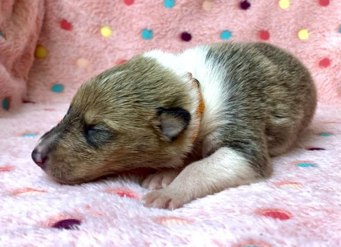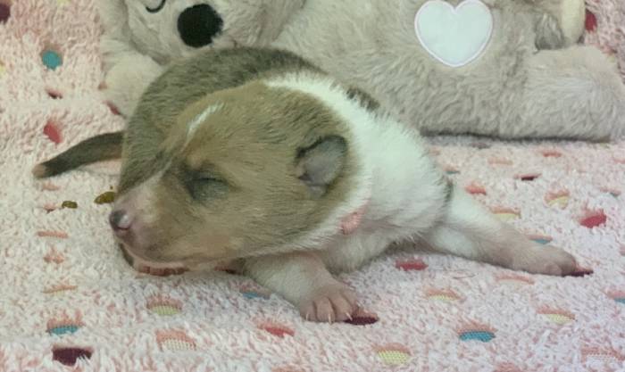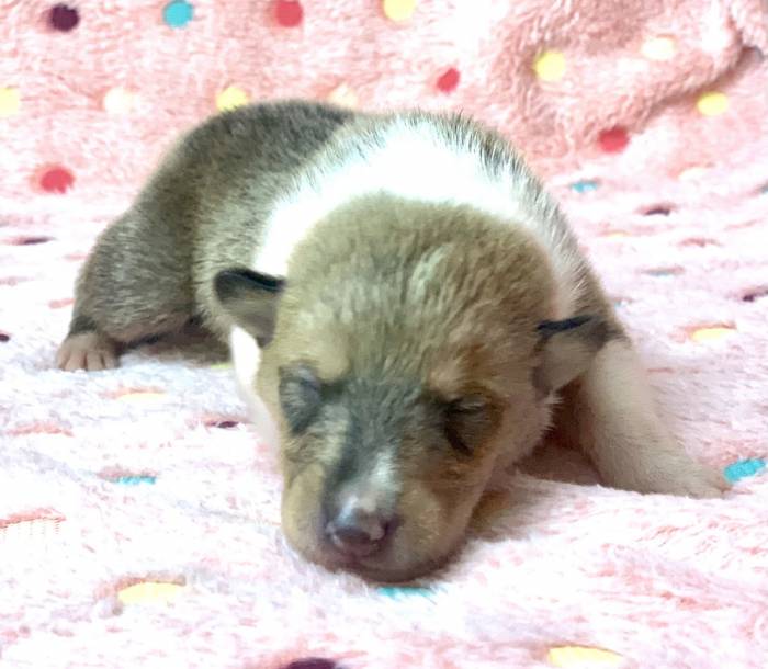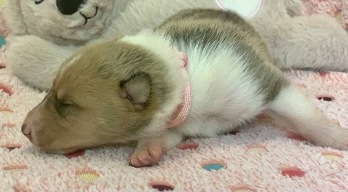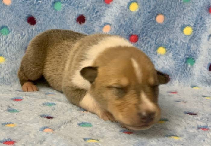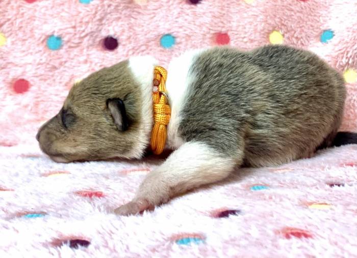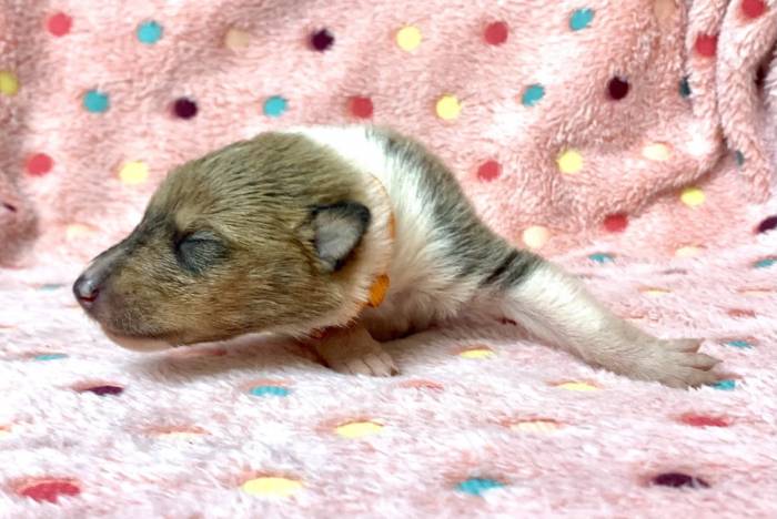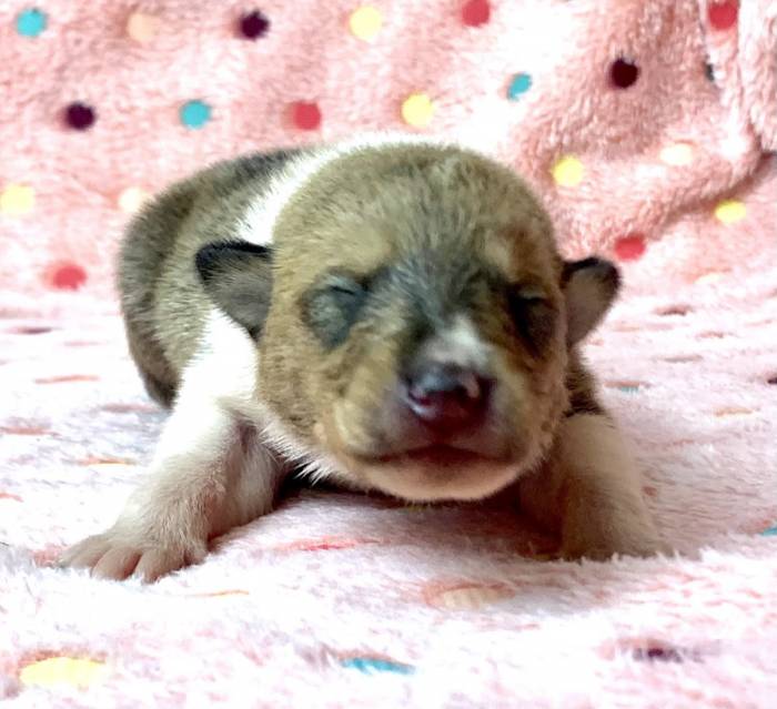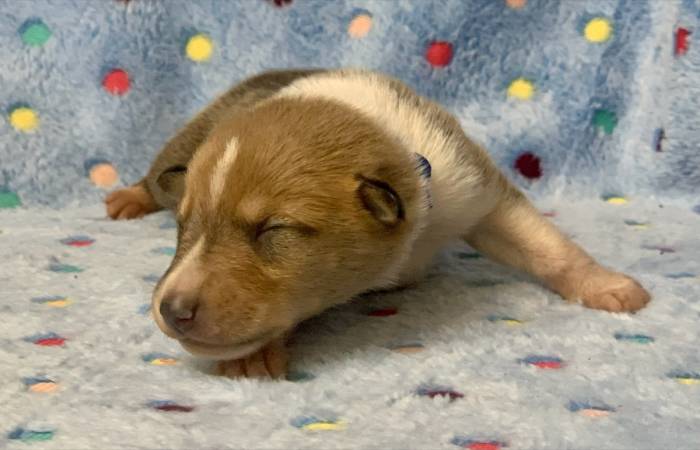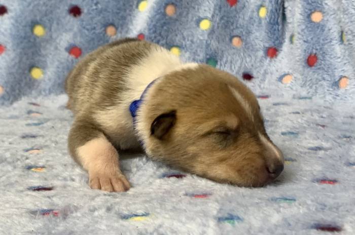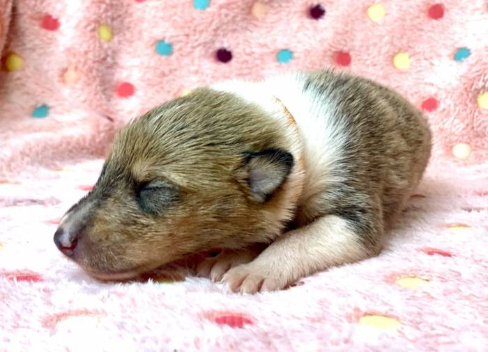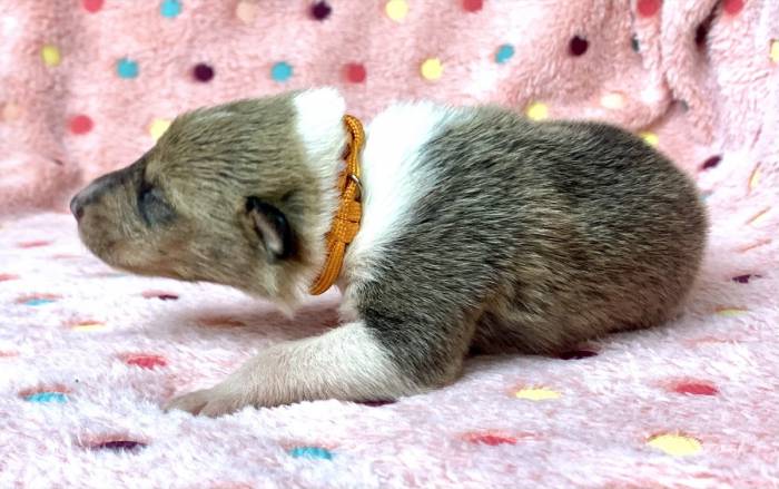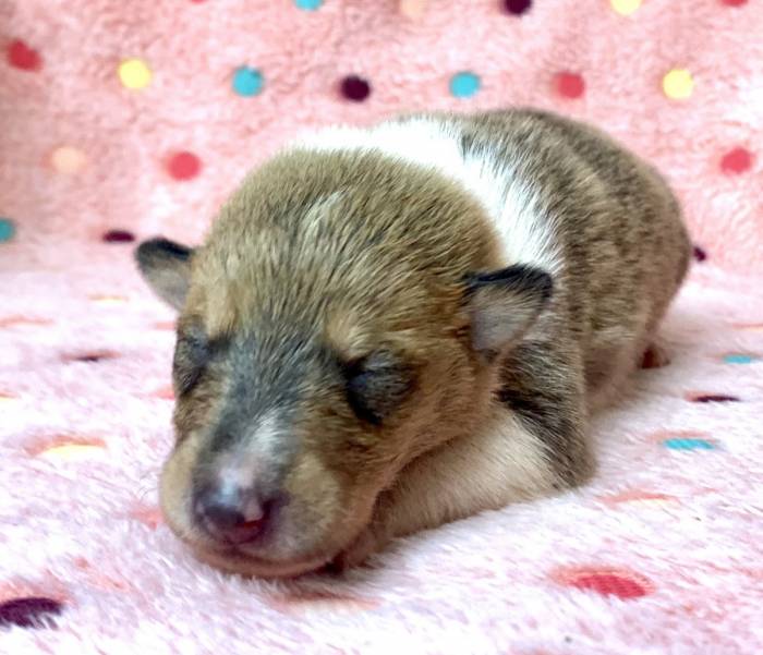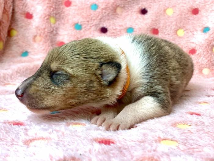 geb. 18.09.2023, 3 Rüden zobel-weiß, 2 Rüden tricolour, 5 Hündinnen zobel-weiß