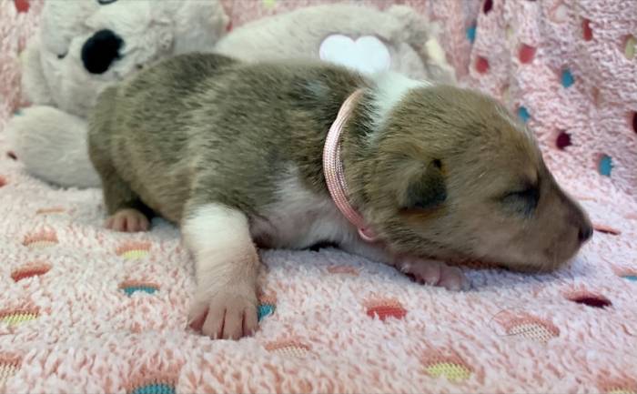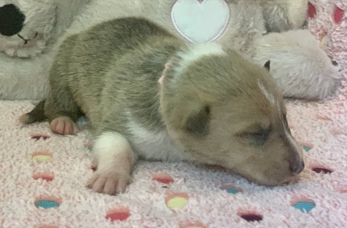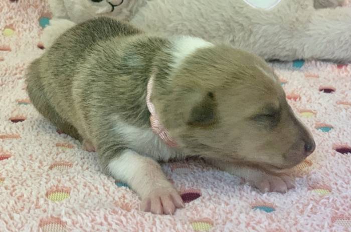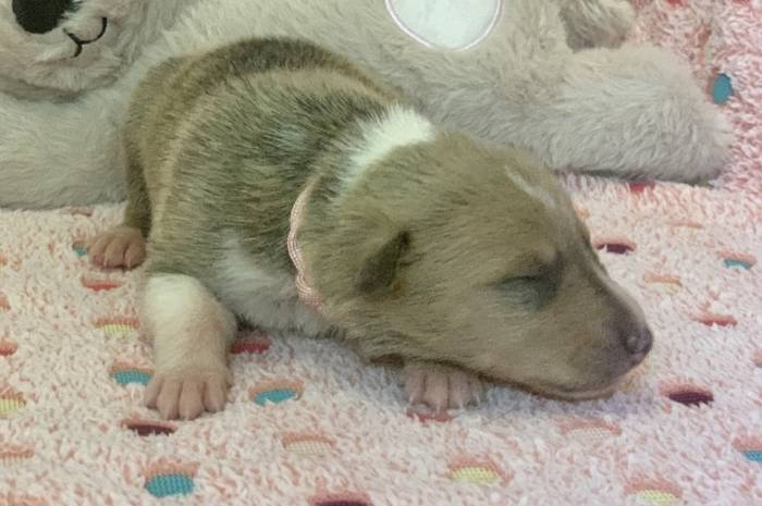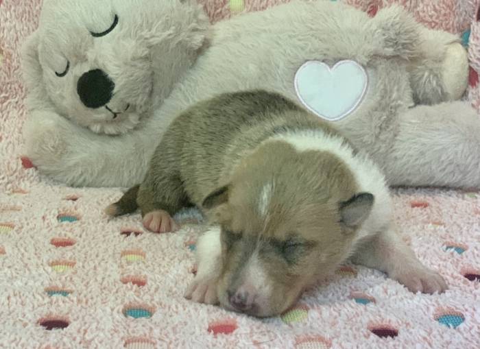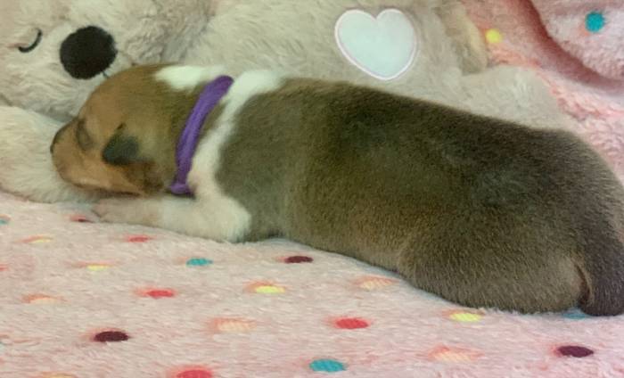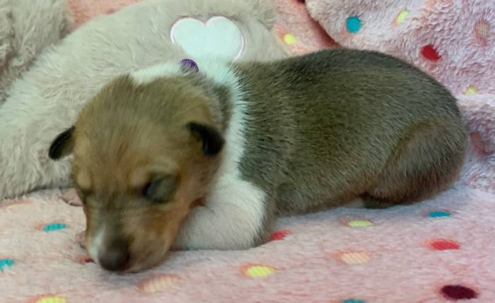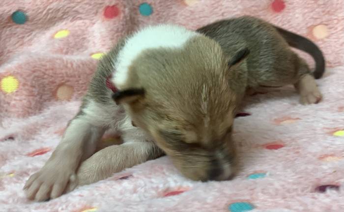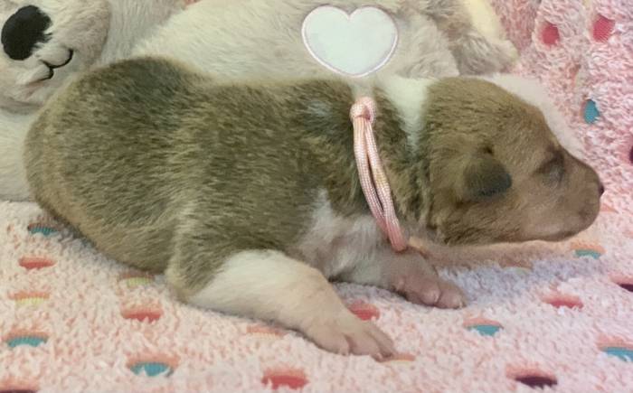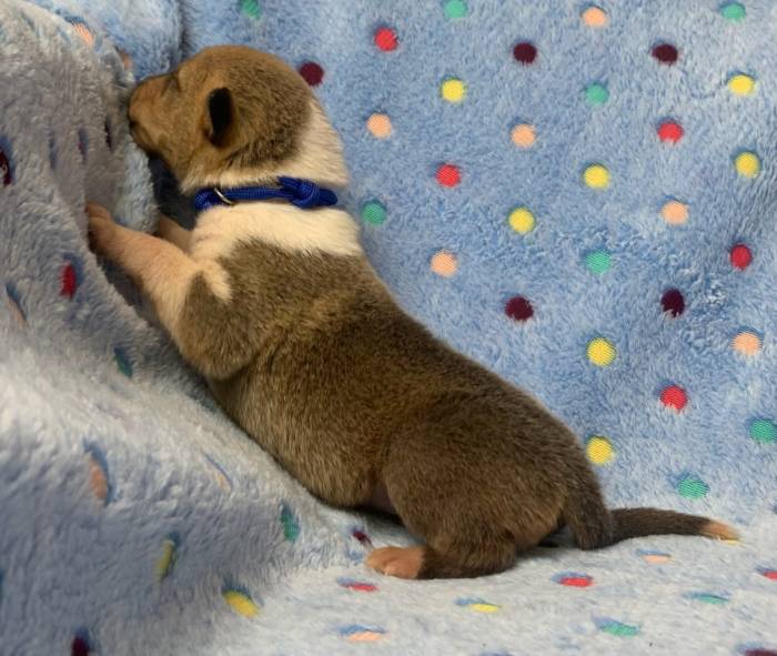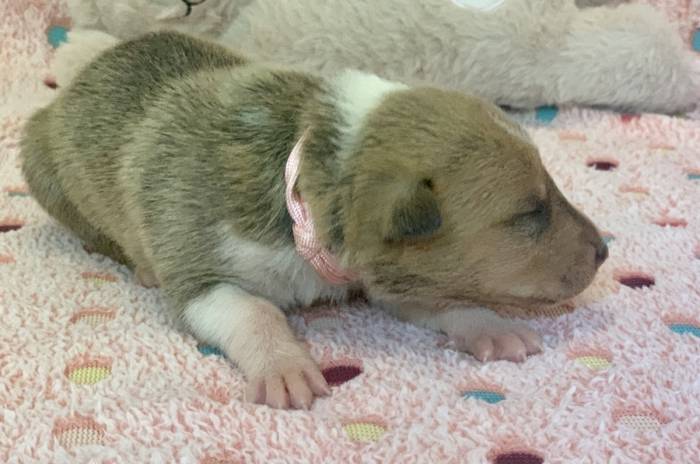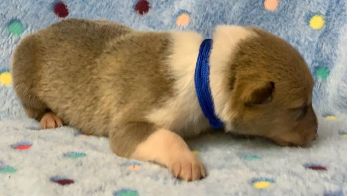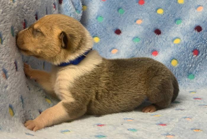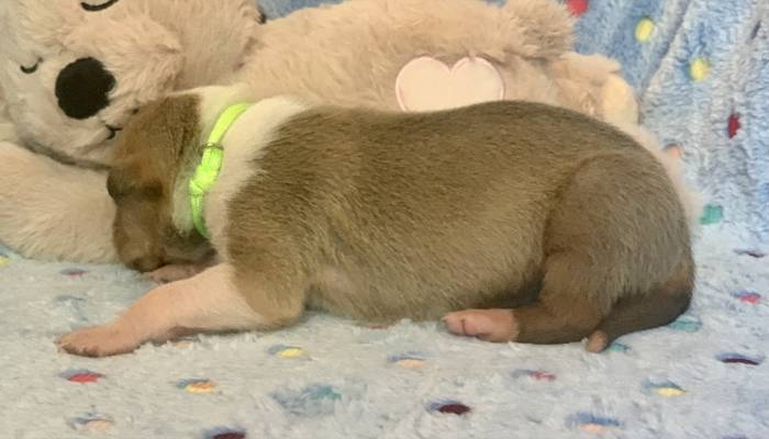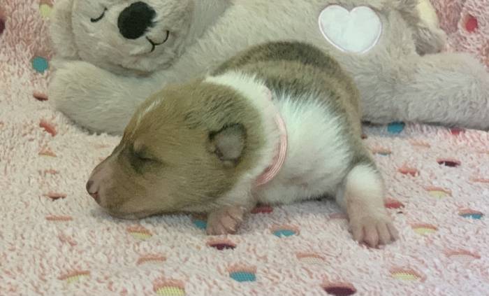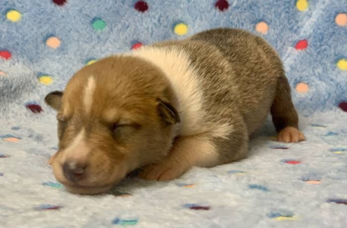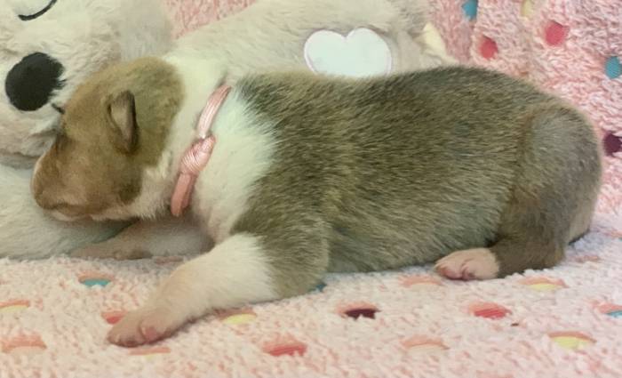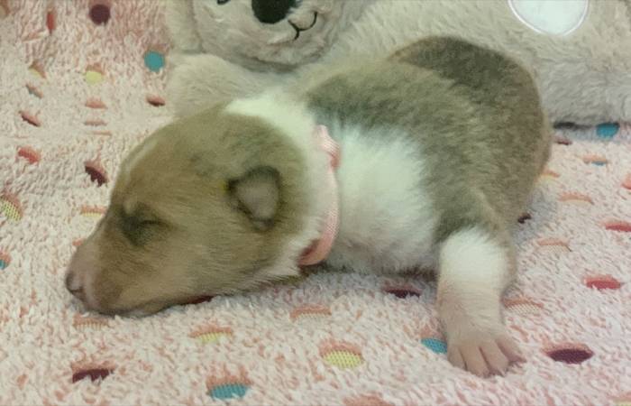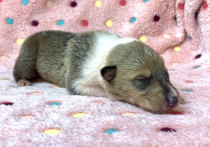 geb. 18.09.2023, 3 Rüden zobel-weiß, 2 Rüden tricolour, 5 Hündinnen zobel-weiß