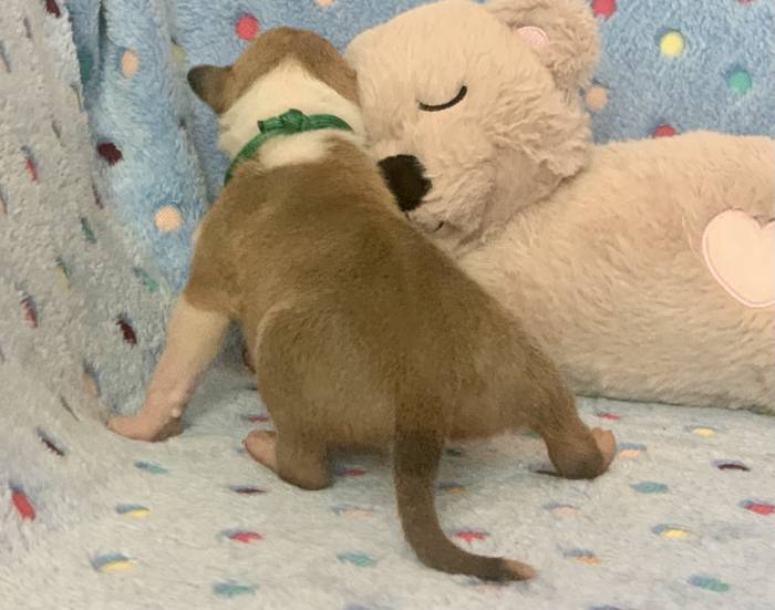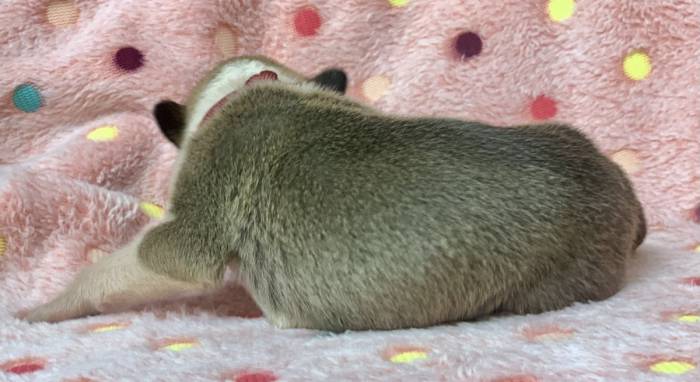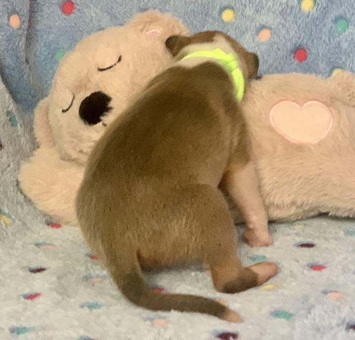 Da es ein so großer Wurf war, bekamen die Babys von Anfang an drei bis vier mal am Tag zusätzlich Aufzuchts-Milch von uns, die Sie auch gerne trinken.