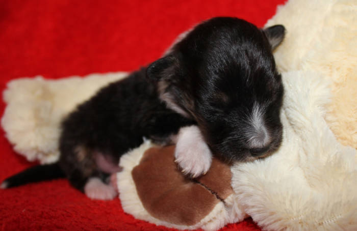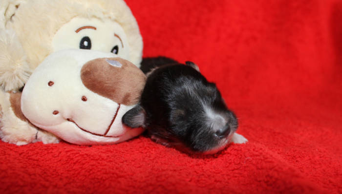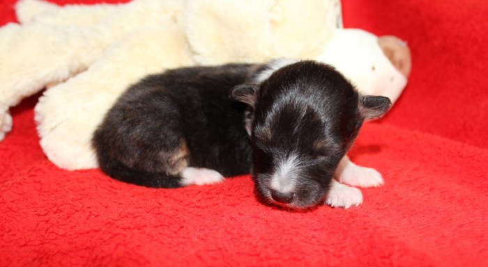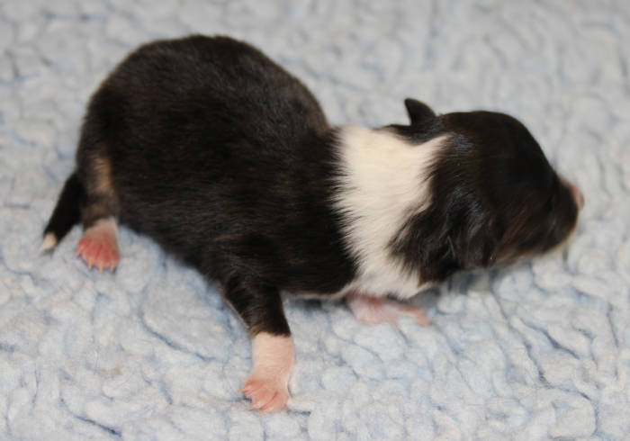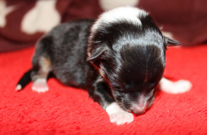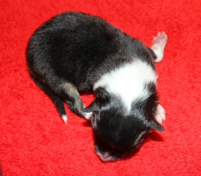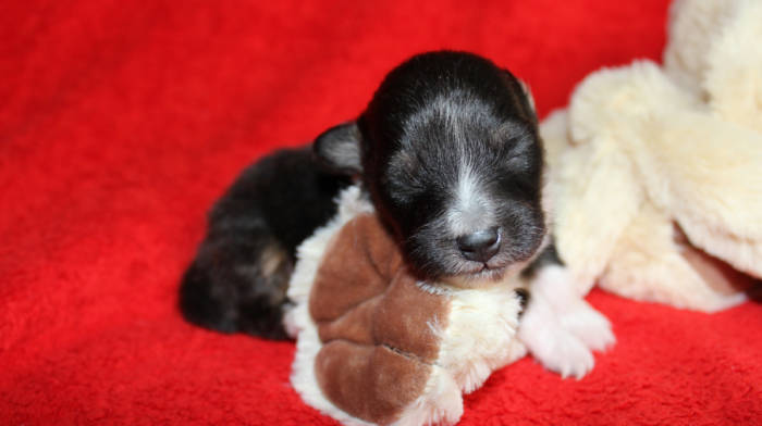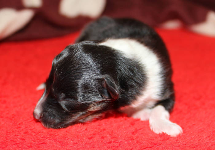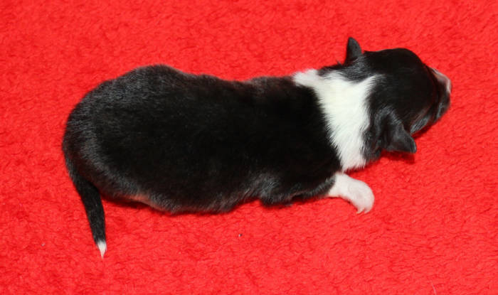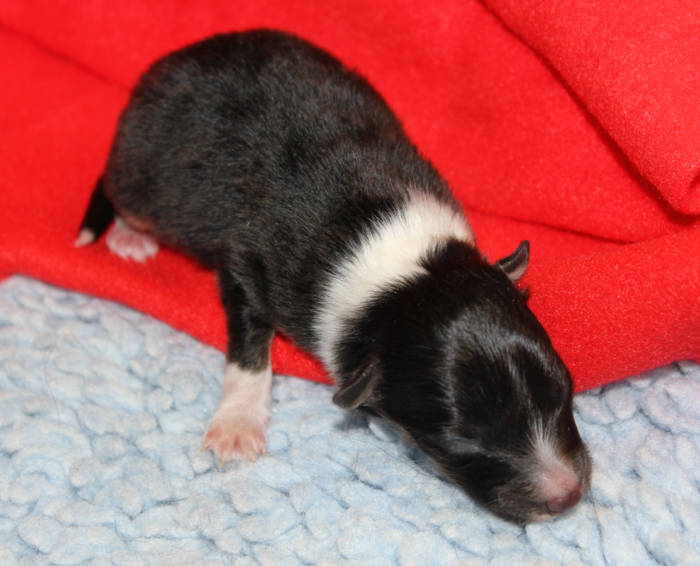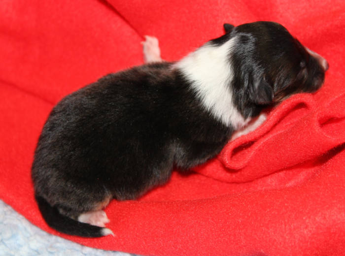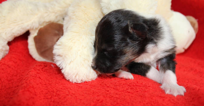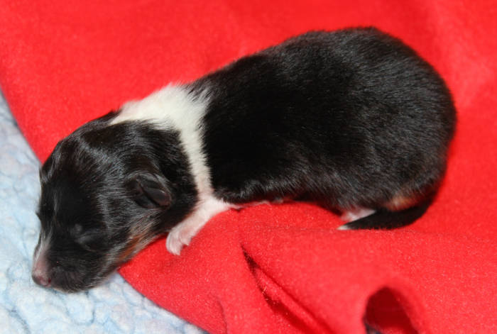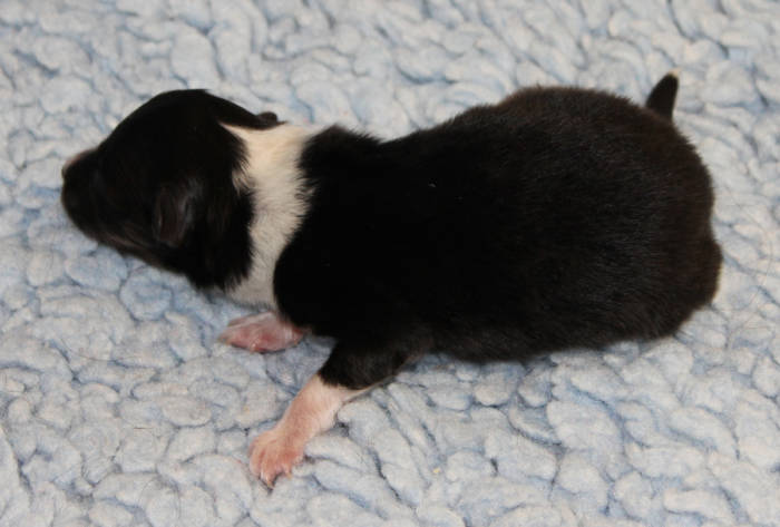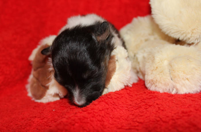 Die beiden folgenden Welpen waren sehr klein und durch die Schwierigkeiten des ersten äußerst mitgenommen. Es waren noch ein Mädchen und ein Junge. Das Mädchen hat sich leider nicht mehr erholt, sondern ist am 2. Tag an dem eingeatmeten Fruchtwasser verstorben.
