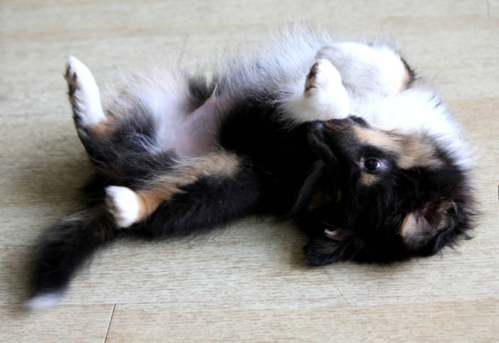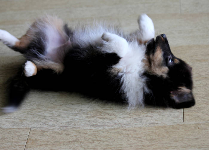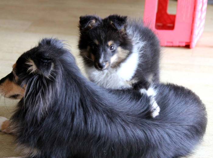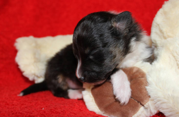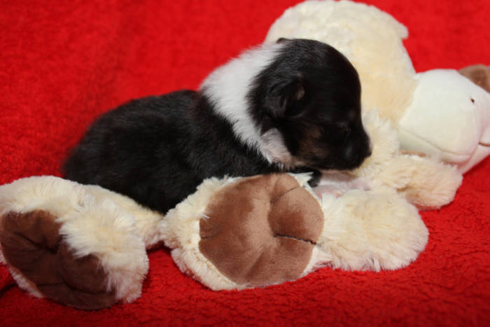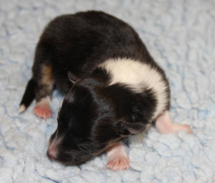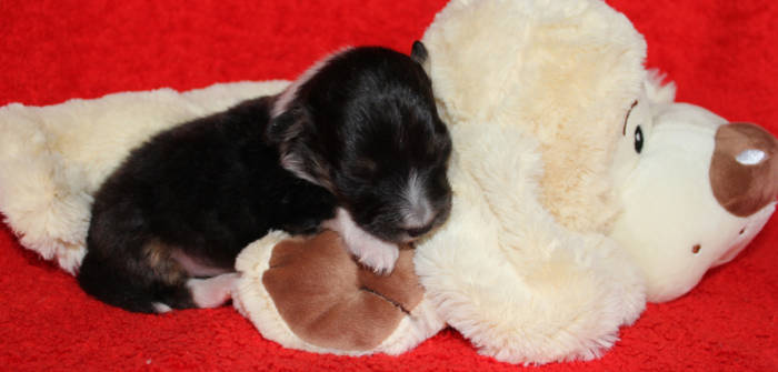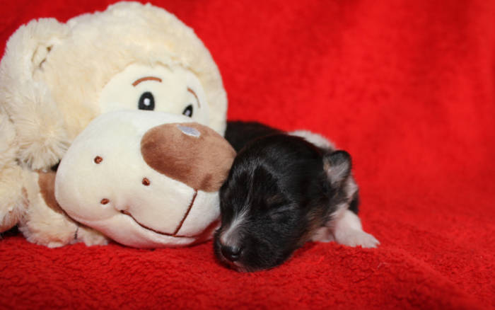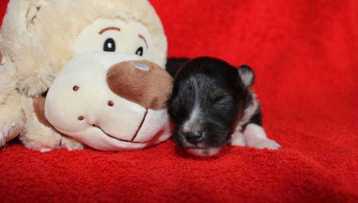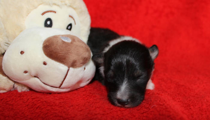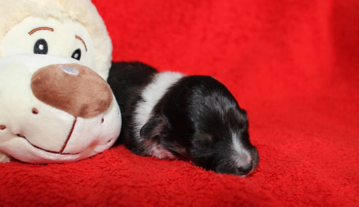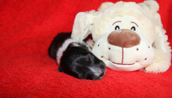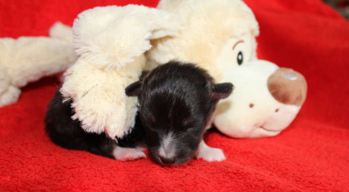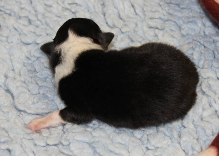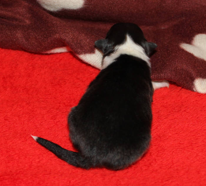 Die beiden folgenden Welpen waren sehr klein und durch die Schwierigkeiten des ersten äußerst mitgenommen. Es waren noch ein Mädchen und ein Junge. Das Mädchen hat sich leider nicht mehr erholt, sondern ist am 2. Tag an dem eingeatmeten Fruchtwasser verstorben.