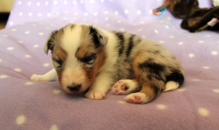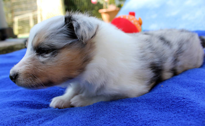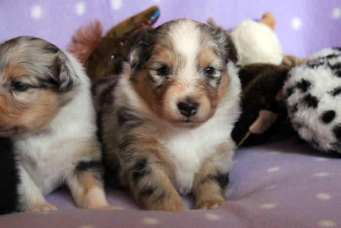 geb. 29.07.2016, 1 Rüde tricolour , 3 Hündinnen blue-merle